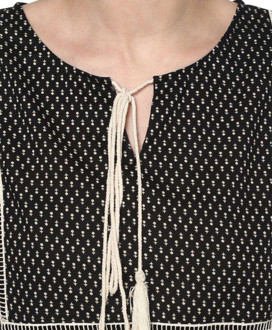 Black regular peplum top, Solid, Round neck, three-quarter, regular sleeves, Woven georgette