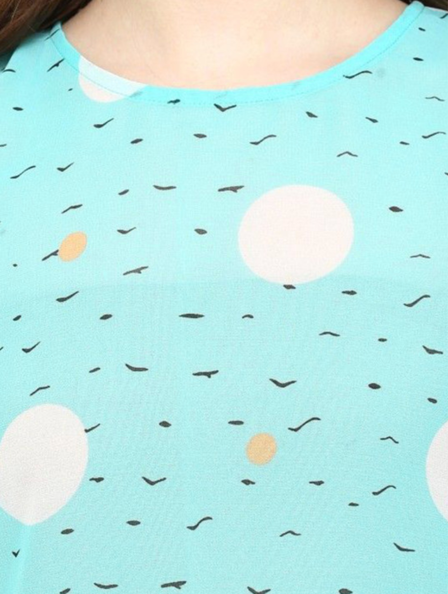 Sea green regular top, Printed, Round neck, Sleeveless, Knitted